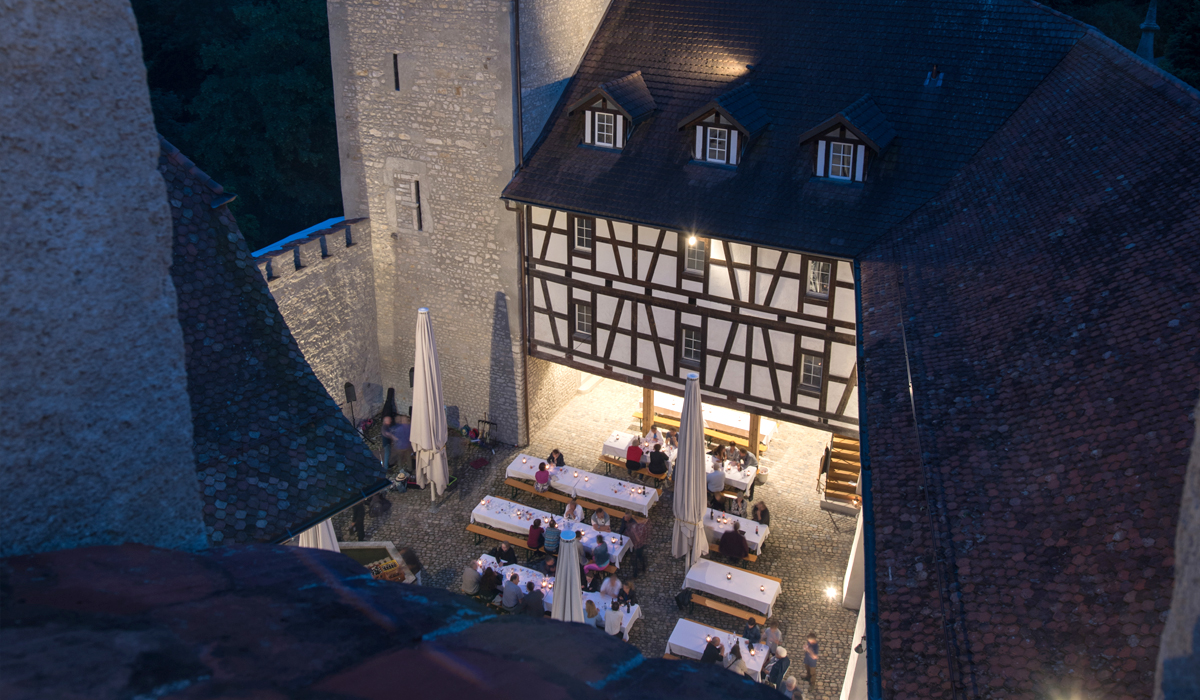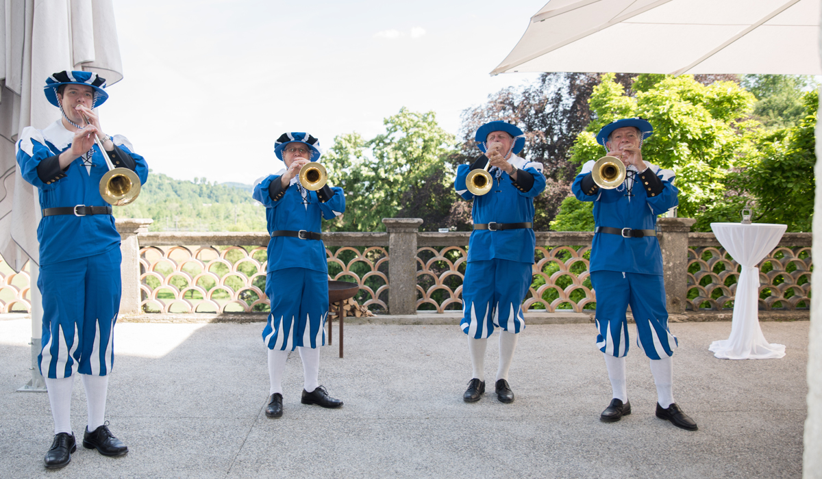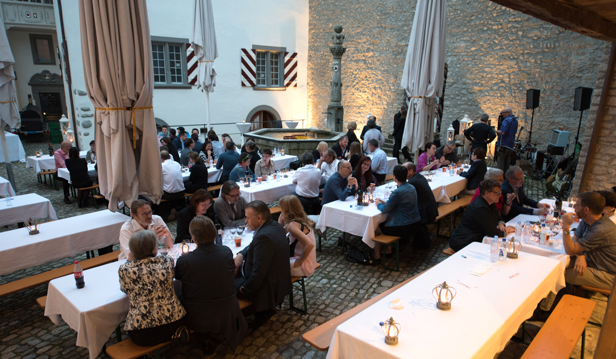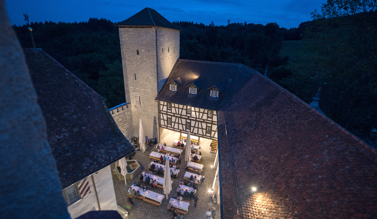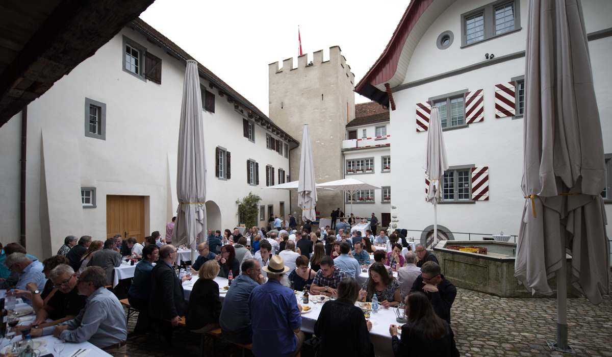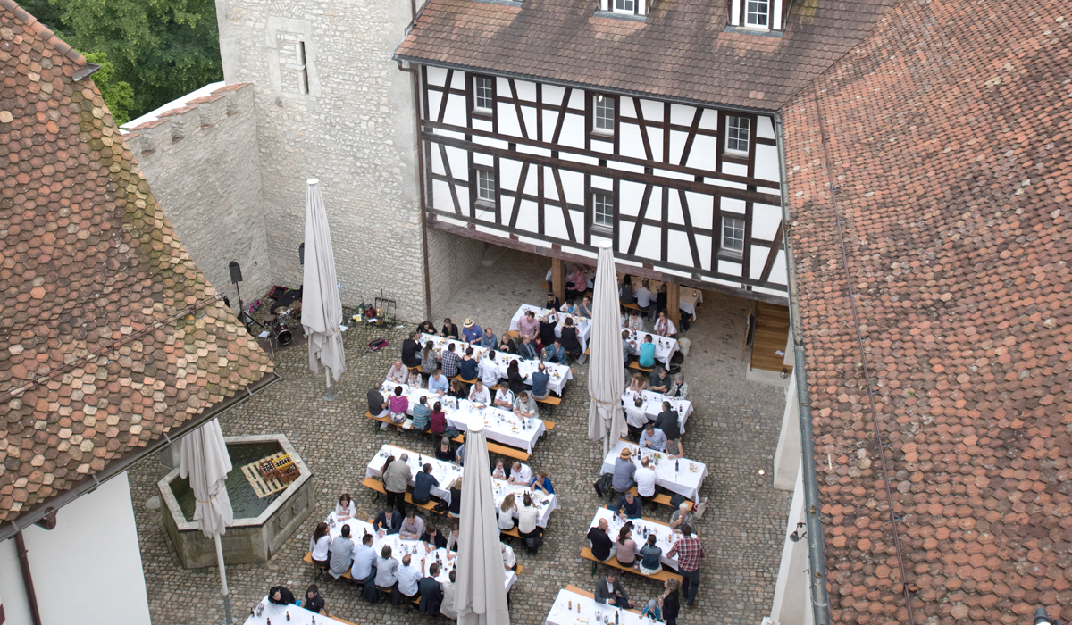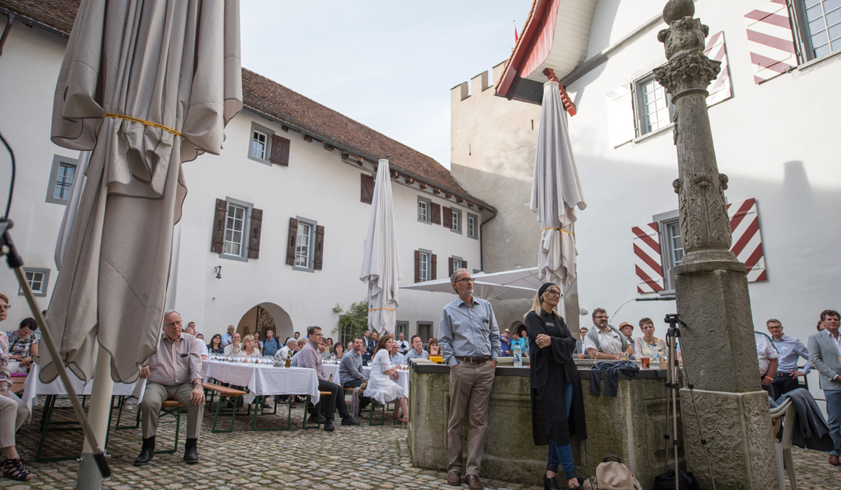 Nach einem würdigen Empfang der 145 Gäste durch die Aarauer Turmbläser folgten Grussworte des Schlossherrn Samuel Wehrli. Die launigen Ansprachen von Dr. Richard Buser, AGV-Geschäftsführer Peter Fröhlich und Dr. Jonas Kallenbach, Bauberater der Kantonalen Denkmalpflege, trugen das ihre zu einer wunderbaren Stimmung bei.