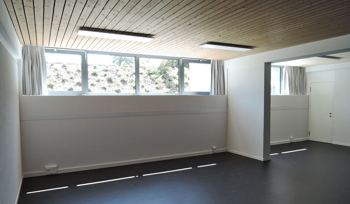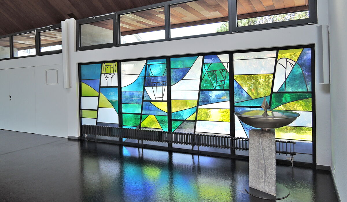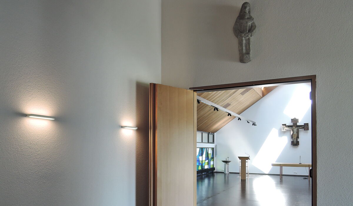 Das erste Feld des Kirchenraums integriert neu einen Eingangsbereich mit Foyer, Garderobe, behindertengerechten WC und Küche. Eine neue Treppe verbindet das Foyer mit den Unterrichtsräumen und Aufenthaltsraum im Untergeschoss. Dank der Niveauangleichung von Chor, Saal und Aussenraumbereich ist eine alters- und behindertengerechte Nutzung gewährleistet. Die energetische Sanierung beinhaltet den Ersatz der gesamten Haustechnik-Installationen, Heizung, Fenster und Sanitäranlagen, sowie die Dämmung der Böden, Dach und Fassaden. Die Dachsüdseite wurde mit Photovoltaik vollflächig bestückt, der filigrane Glockenturm wurde instand gestellt. Eine Öffnung verbindet neu den Chor mit der Sakramentskapelle, die als Ort der Stille und der Meditation dient.